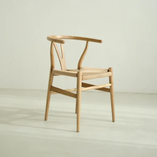The back and armrest are made of 1 piece of oak. The seat is made of paper cord in a natural color and the frame of this model is made of oiled oak. The oil provides a protective layer. In daily use, this chair is easy to clean with a soft cloth that is wrung out with clean, lukewarm water or a colorless soap solution if some dirt has come on. The paper cord itself is easy to clean by dabbing it. The chair is comfortable due to the unique Y-shaped design of the backrest and is very stable.