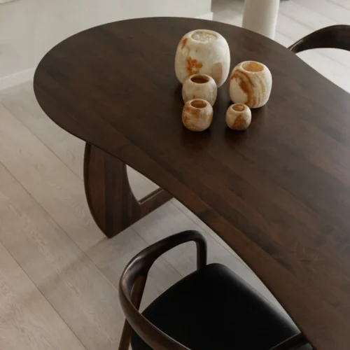 The curved handmade walnut dining chair – Velv, stands for both luxury and comfort. The soft curves offer a renewed, modern view of the design from the 70’s.