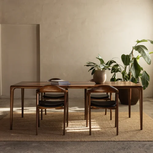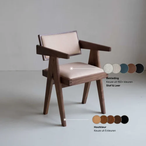 – All our chairs can be combined entirely according to your wishes in wood, fabric and leather color. Match each chair with your table to your liking, made from the same batch of wood. Create a unique custom dining area that you don’t just see with your neighbors! –