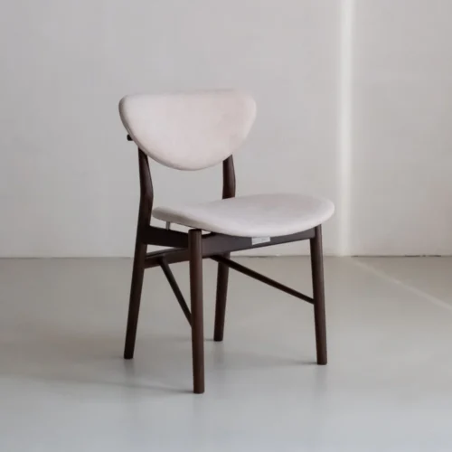 Our Finn Chair has a playful elegance that you don’t see very often. The backrest and seat have a soft, rounded shape that immediately invites, while the wooden frame looks tough and sturdy. The contrast between light and power makes this chair unique and recognizable.