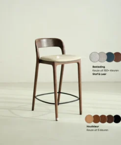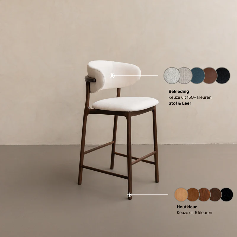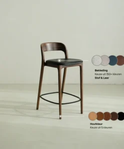 What distinguishes the Ella bar stool is its sleek Scandinavian-Japandi interior style. With its beautifully curved backrest, this chair adds an elegant and modern touch to any space. The design is inspired by the minimalist aesthetic of Scandinavian design, combined with the calm and serene atmosphere of the Japanese interior style.