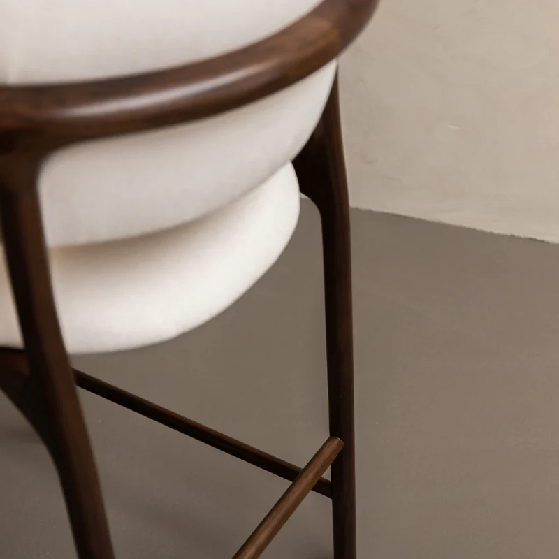 Ella bar stool walnut wood – white fabric