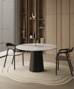 Half oval marble dining table – Black oak double ribbed cylinder leg
