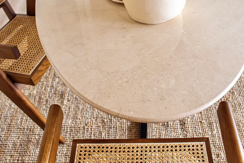 Made of high-grade wood and marble, this table is very durable and suitable for intensive use. The surface is easy to maintain and can be used for all kinds of purposes, from a cozy dinner to working on a project.
