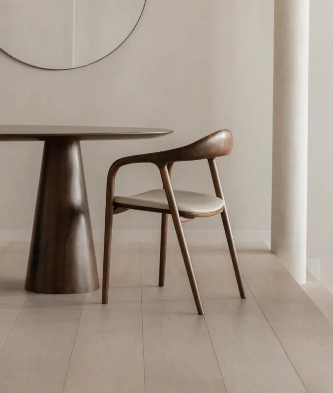 Versatile Aesthetic: While it thrives in a dining setting, its sculptural profile makes it an ideal choice for a minimalist office or a sophisticated accent chair in a living gallery.