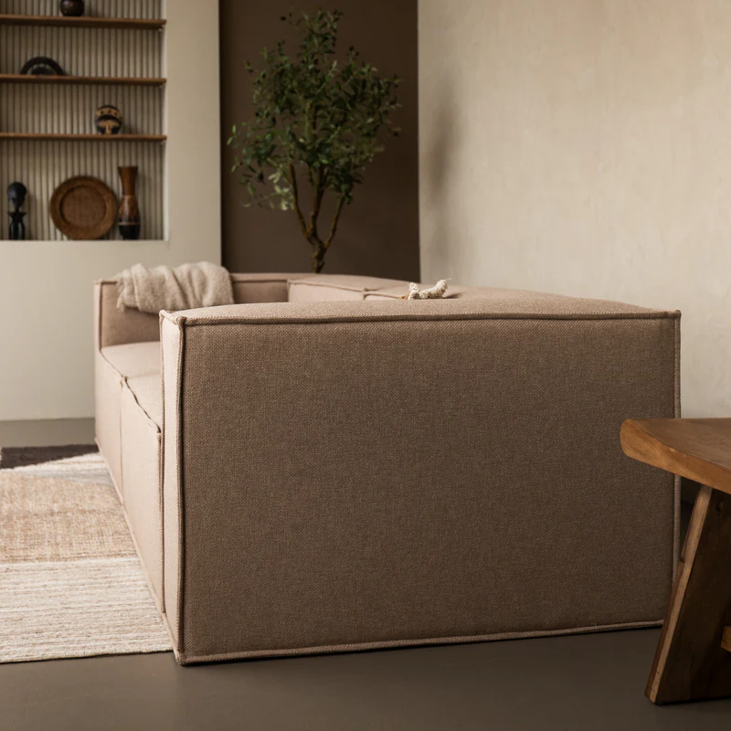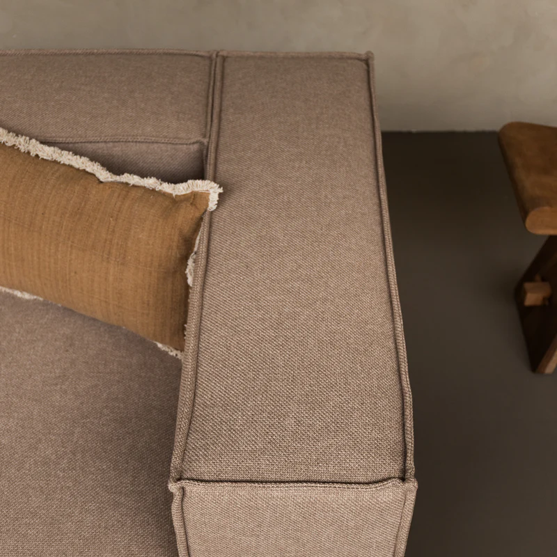 Inside, Clay is made of certified wood and filled with a soft down and feather filling, which is sewn into strips to extend its lifespan and maintain its iconic shape. Clay can be manufactured in many different set-ups to create the right seating area in your home. The fabric is a thick Polyester / linen fabric that looks beautiful and sturdy together with the upholstery finish. Clay is available in almost any color as desired. A timeless lounge design.