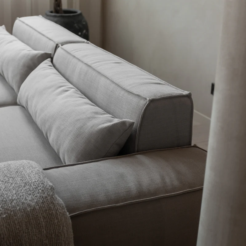 Inside, Malin is made of certified wood and filled with a soft down and feather filling, which is sewn into strips to extend lifespan and maintain the iconic shape. Cozio can be manufactured in 4 different set-ups to create the right seating area in your home. The fabric is a thick Polyester / linen fabric that looks beautiful and sturdy together with the upholstery finish. Cozio is available in almost any color to your liking. A timeless lounge design.