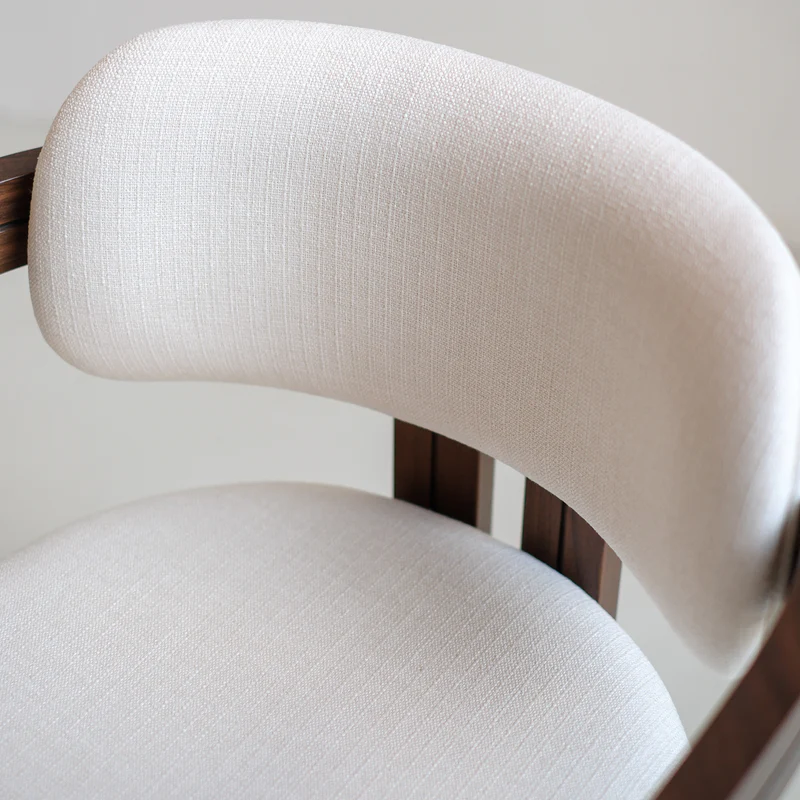 Rich, warm walnut wood is combined with off-white linen texture, creating a striking, elegant dining chair. The fixed seat is made with soft foam filling of the highest quality and lined with linen, made for hours of comfortable dining, working or studying.