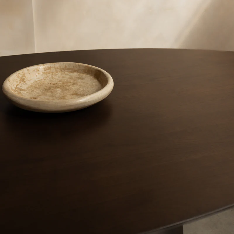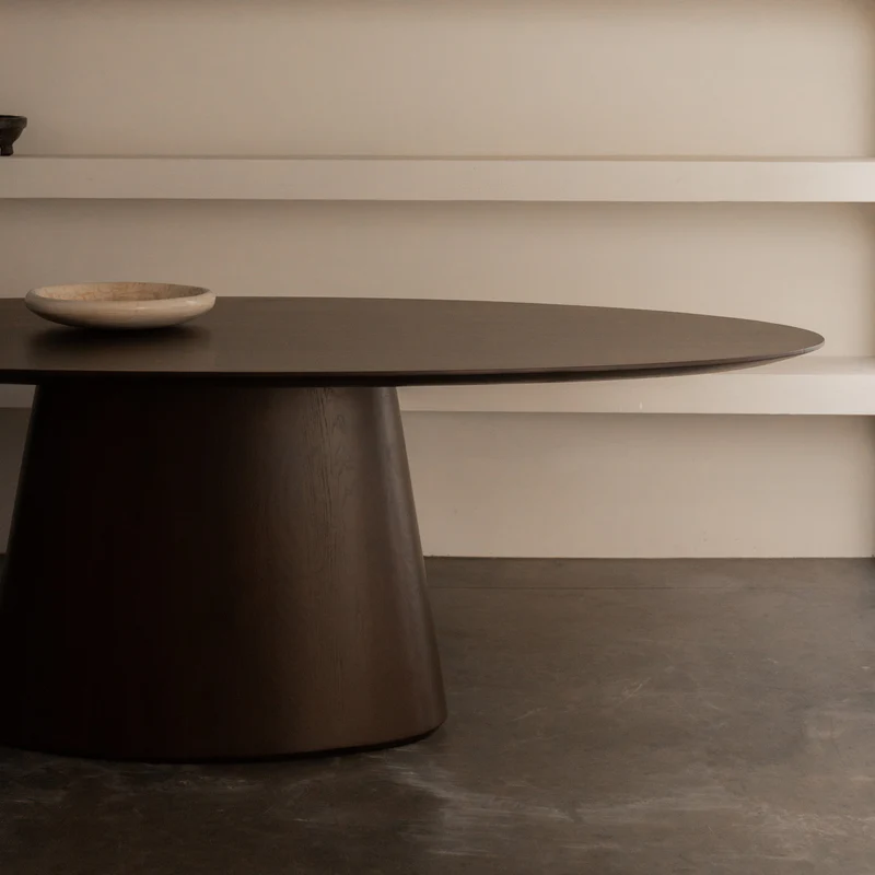 The Oqone dining table is designed to impress. Its powerful base and perfectly balanced blade make for a silhouette that you won’t forget easily. Minimalist in its lines, but rich in appearance due to the warmth and texture of the wood.